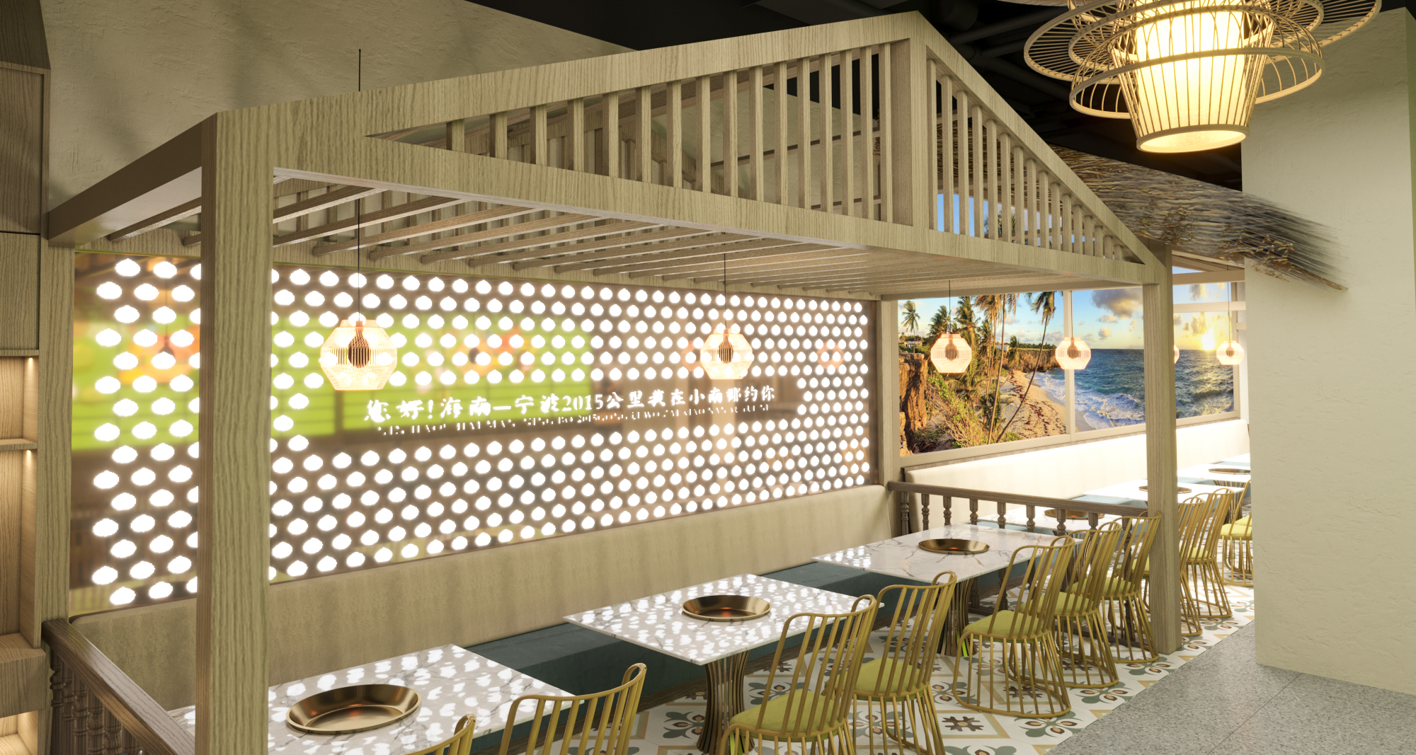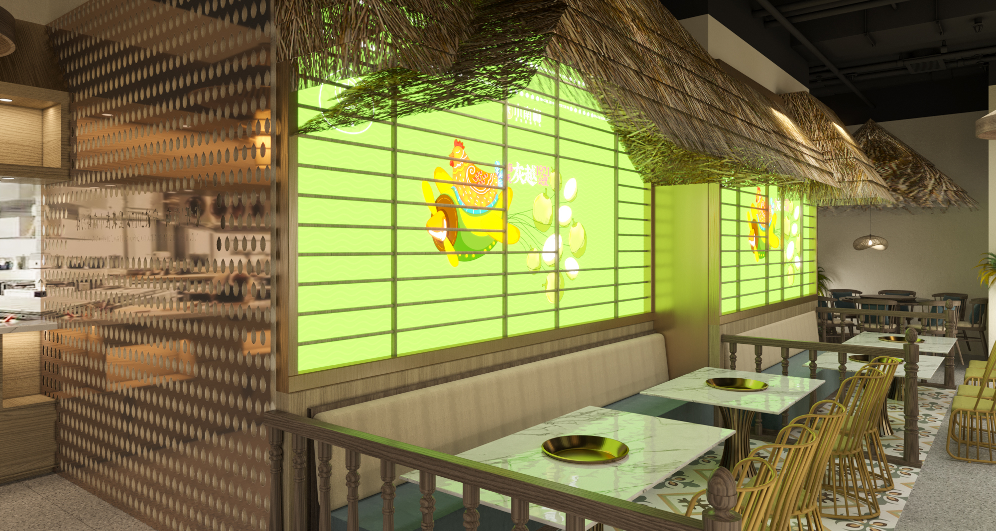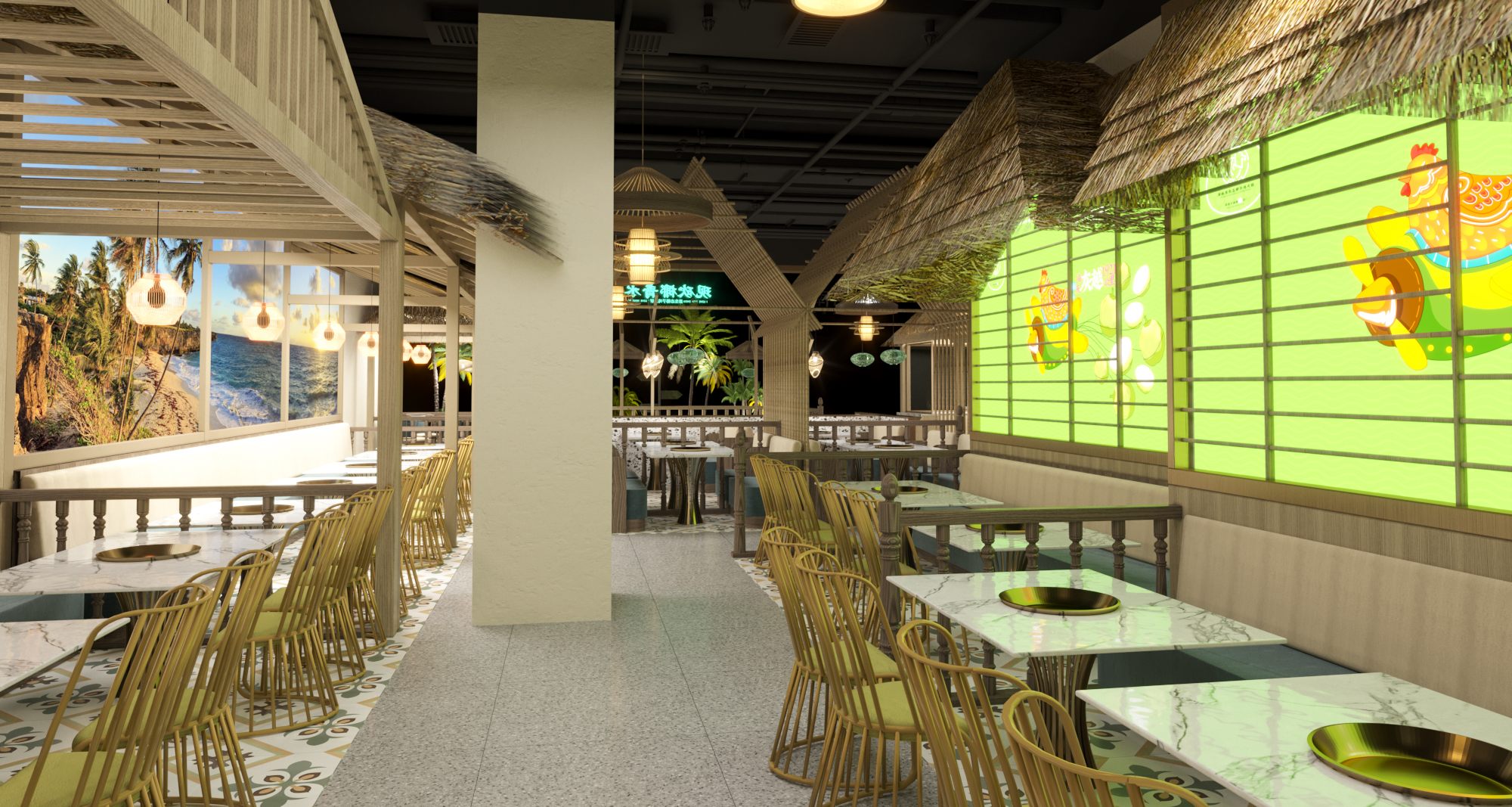設(shè)計需平衡商場店的實用需求——動線流暢、翻臺高效,同時通過細(xì)節(jié)(如定制餐具、自然音效)強化品牌記憶點,讓顧客在品嘗美味椰子雞的同時,沉浸于輕松愜意的森系氛圍中,實現(xiàn)品牌差異化競爭。